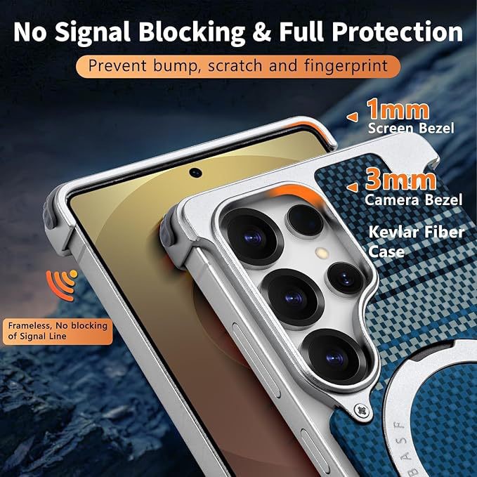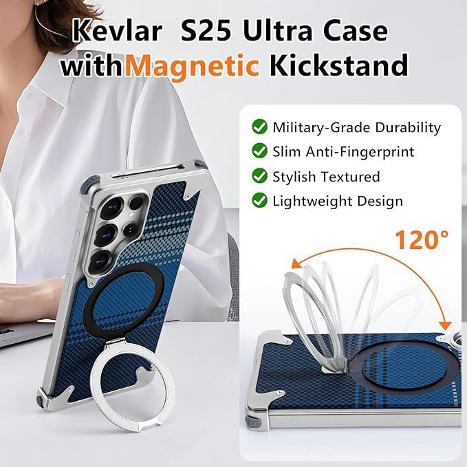 Kevlar Carbon Fiber Pattern Suitable For Samsung S25Ultra Bracket Magnetic Mobile Phone Case Metal Anti-Fall Case