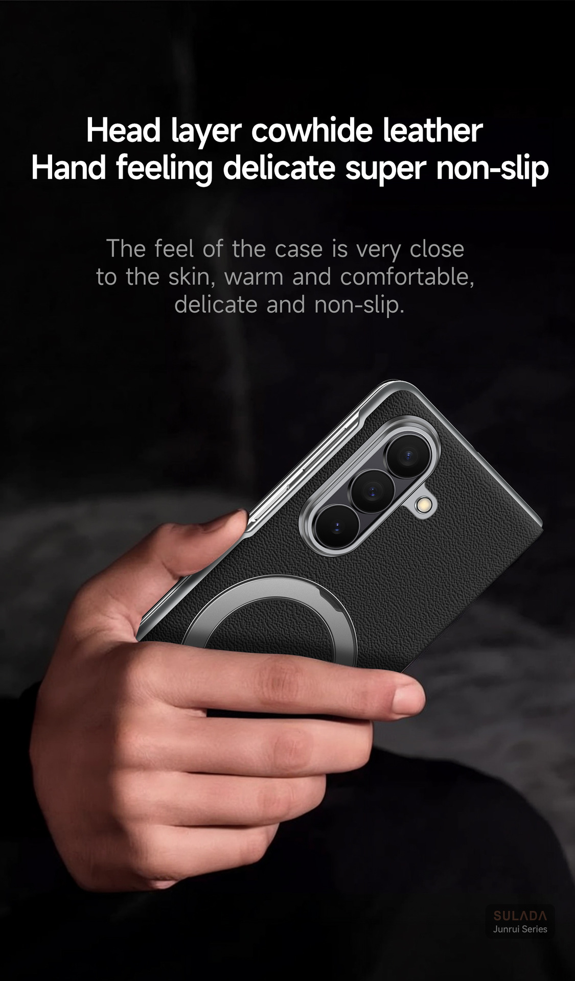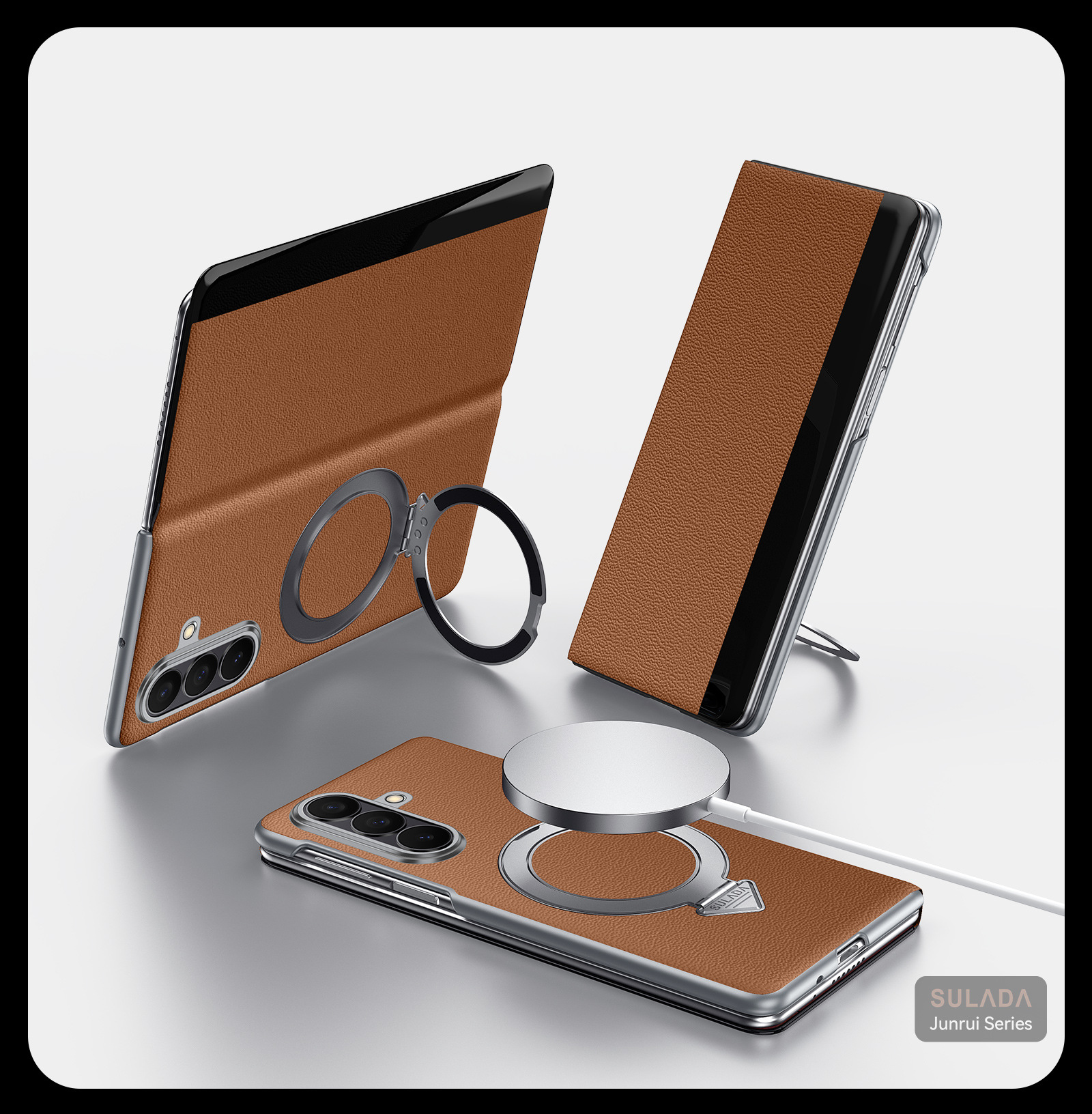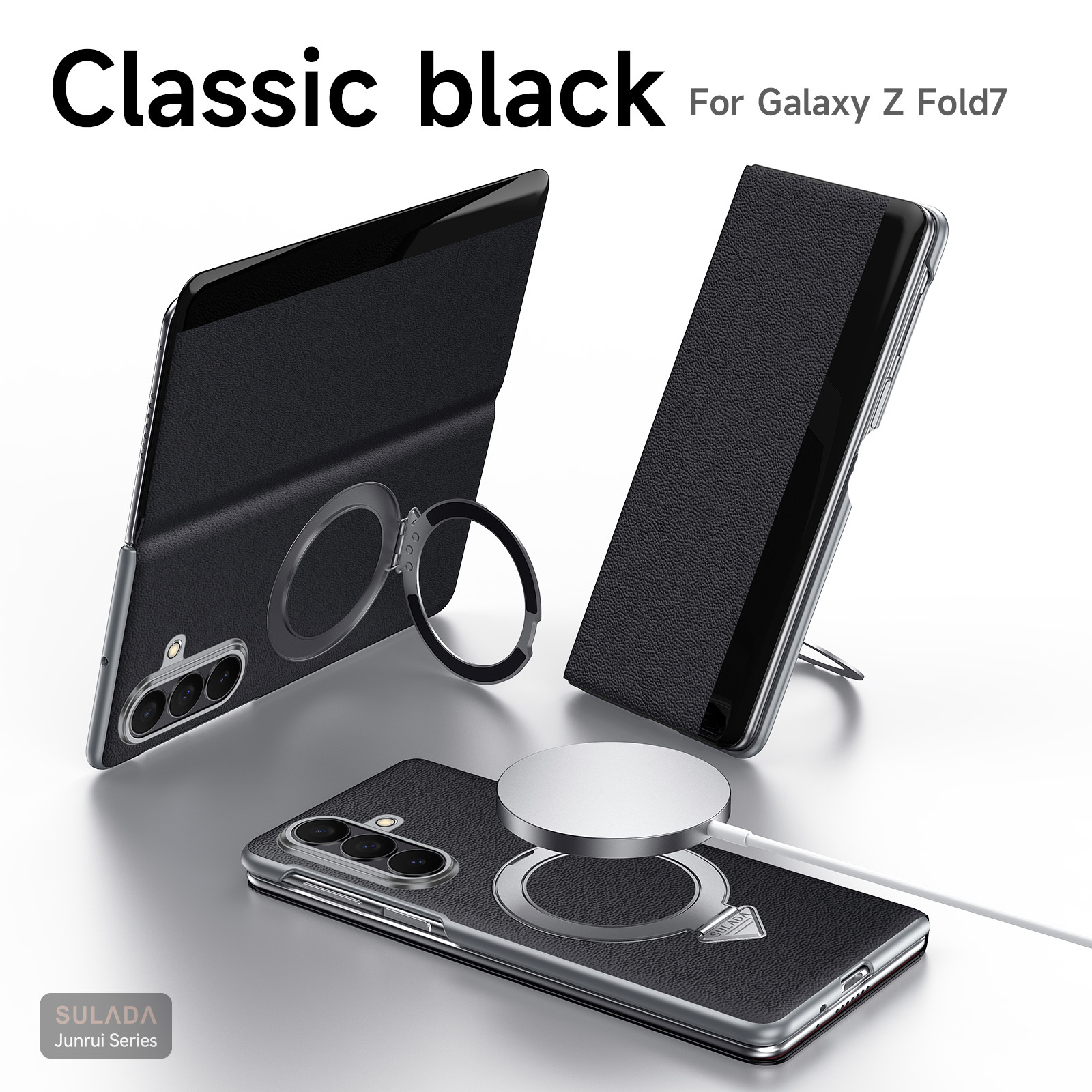 Samsung Fold7 Magnetic Bracket Real Leather Protective Case