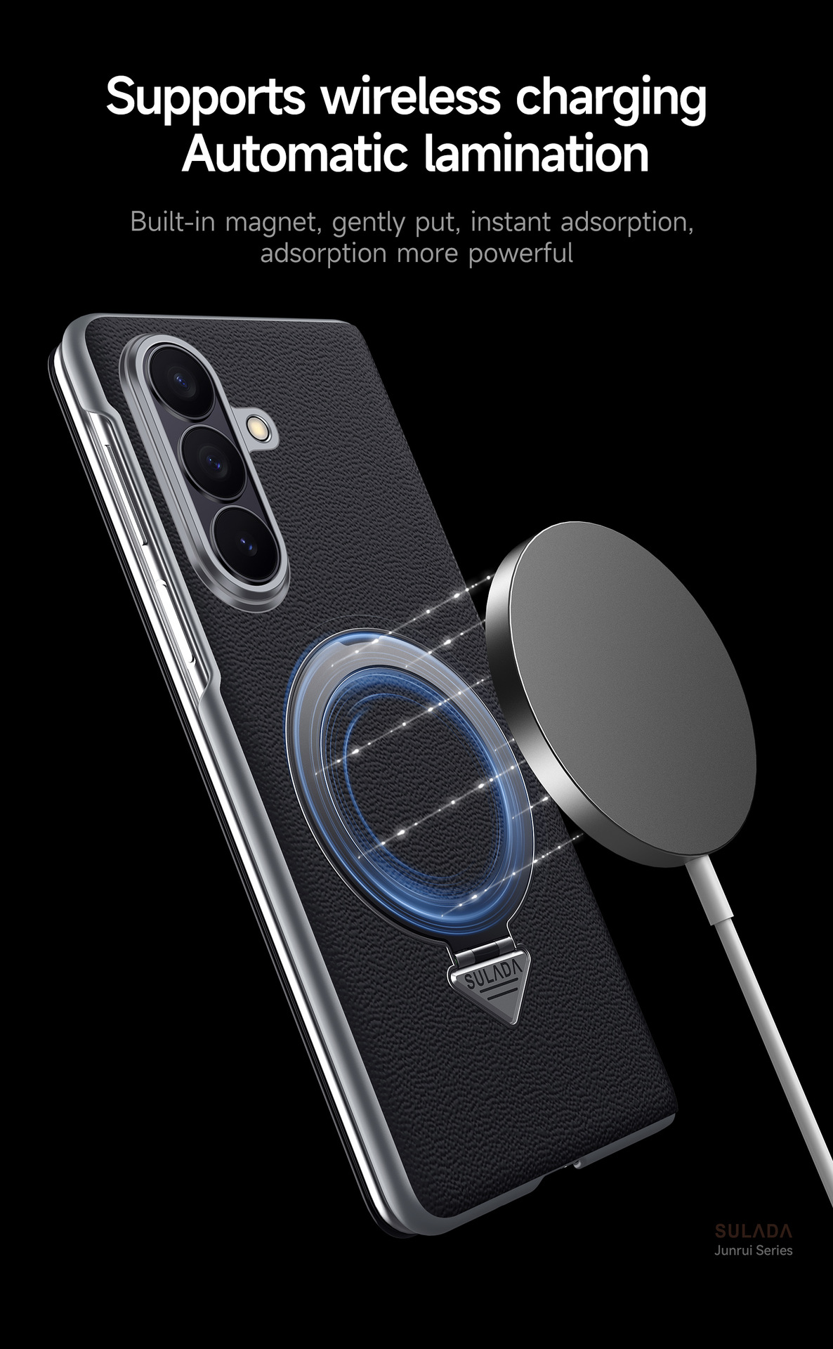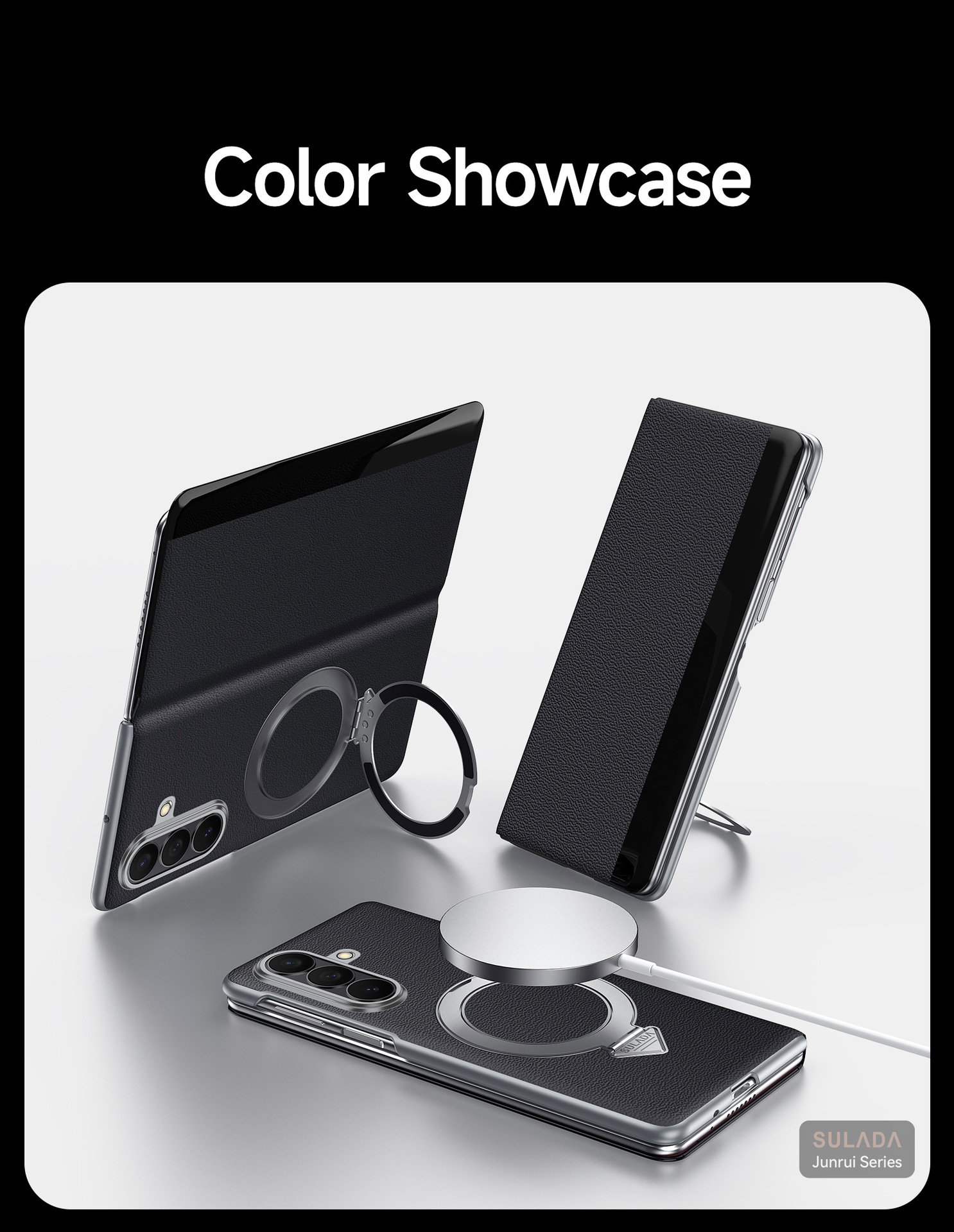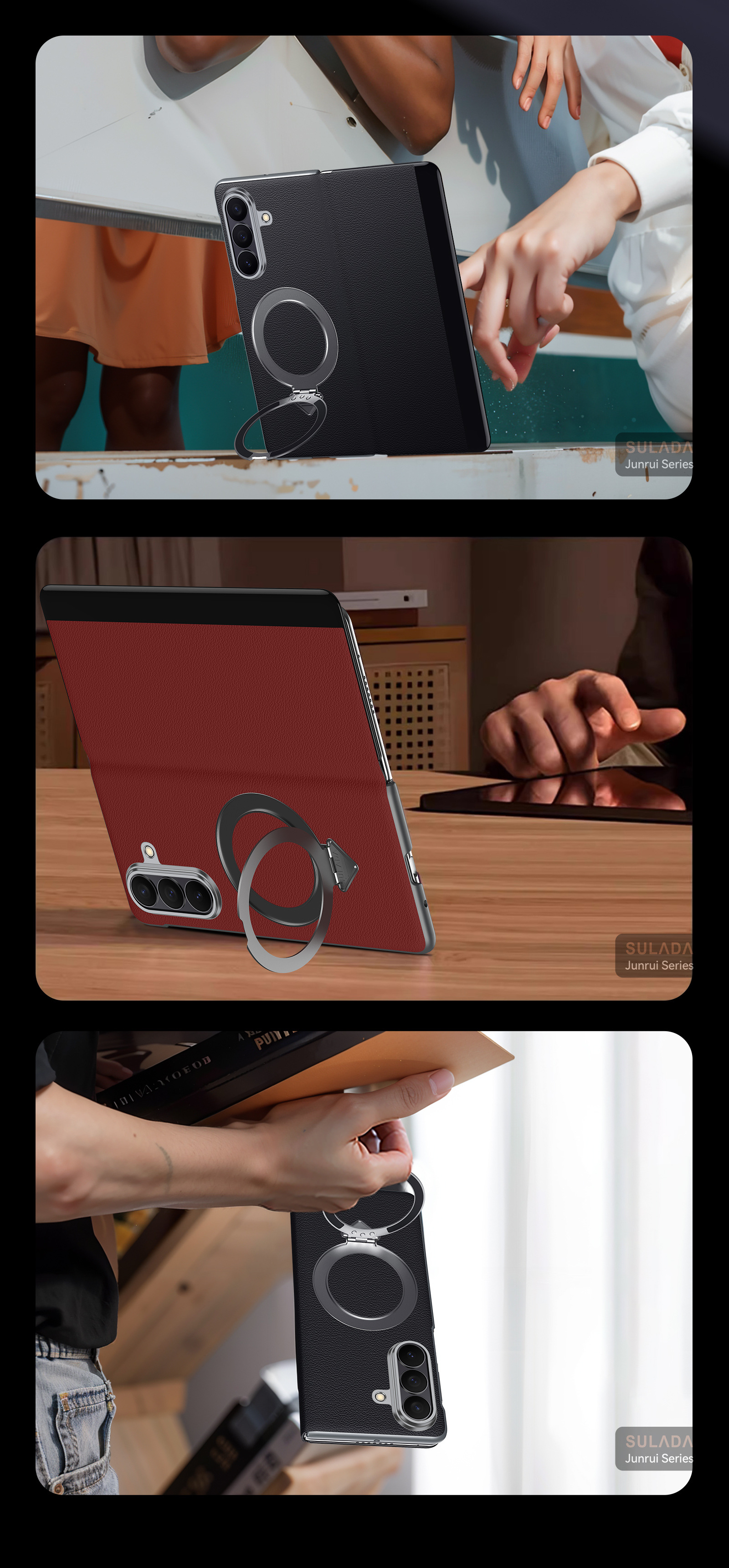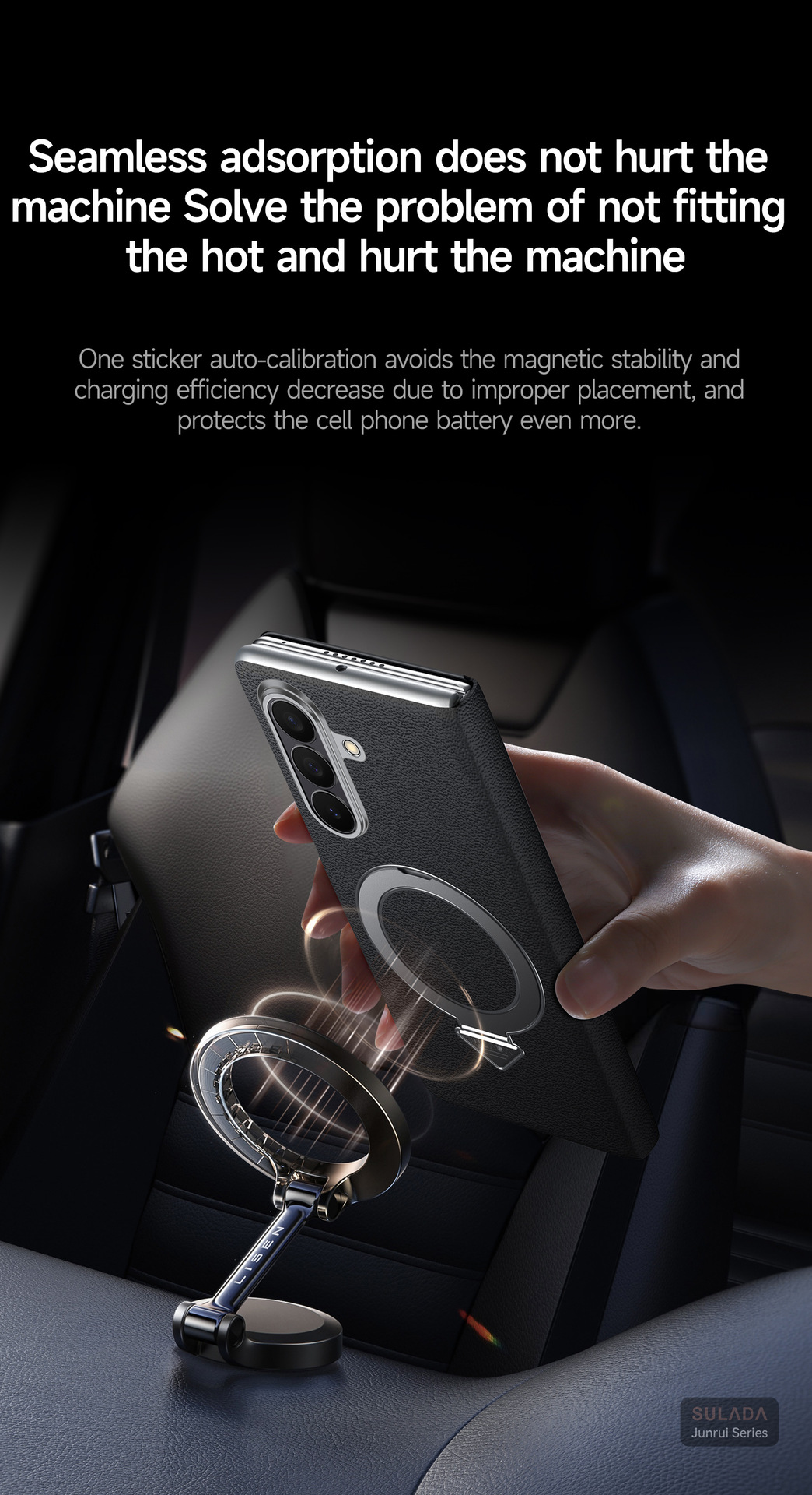 Samsung Fold7 Magnetic Bracket Real Leather Protective Case