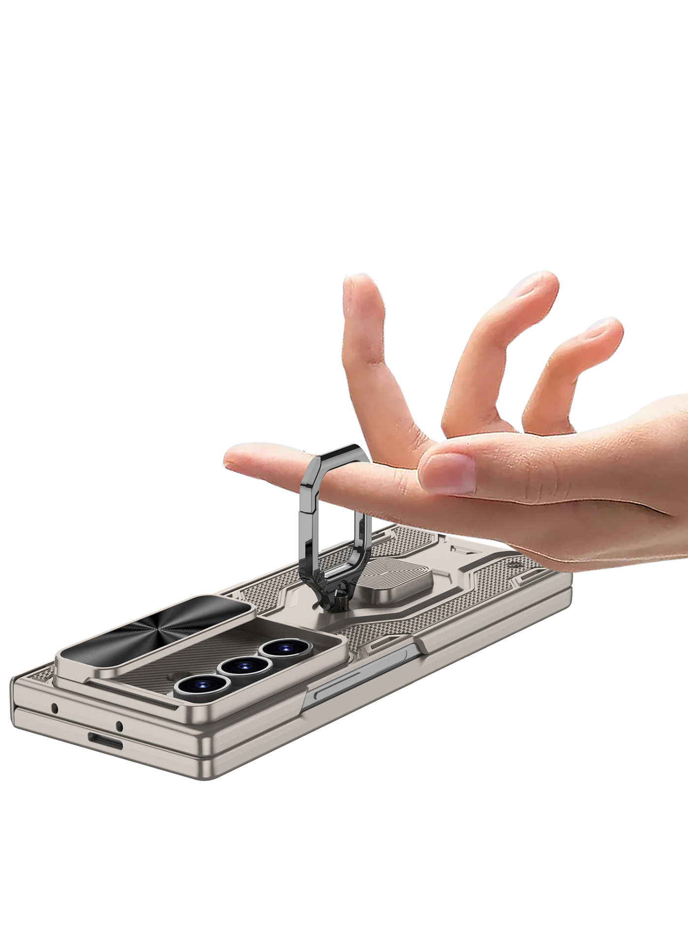 Suitable For Samsung Zfold7 Mobile Phone Case Sleeve Push Window Lens Ring Bracket Pen Slot Protective Cover Diamond Magnetic Adsorption Pen