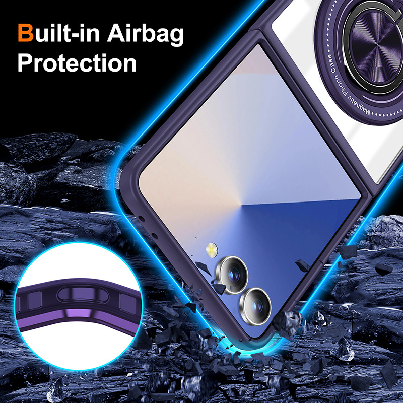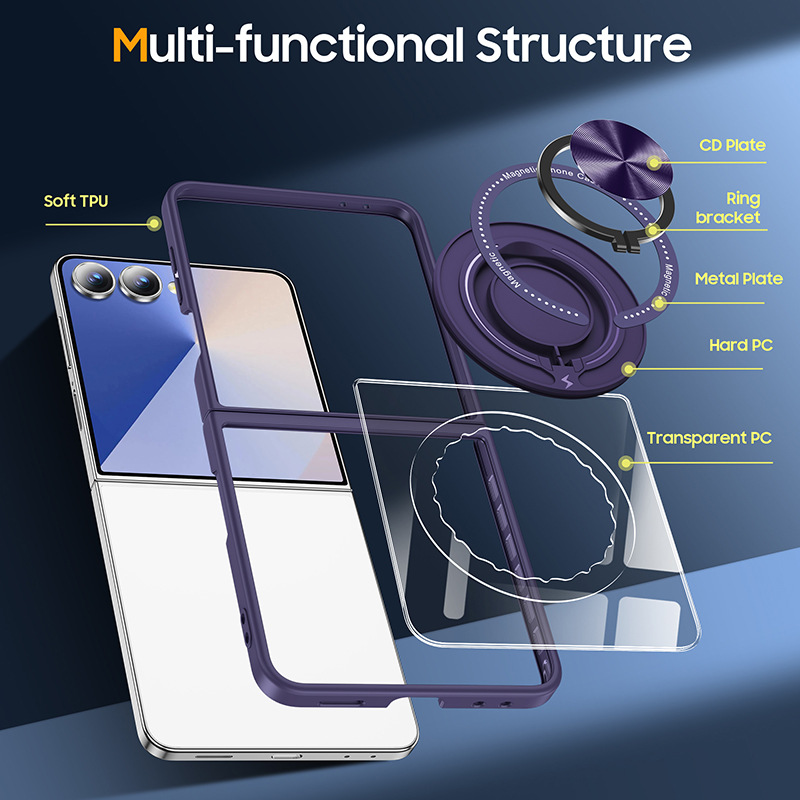 Samsung Zflip7 Mobile Phone Case Transparent Anti-Fall Zflip6 Folding Magnetic Bracket Mobile Phone Case