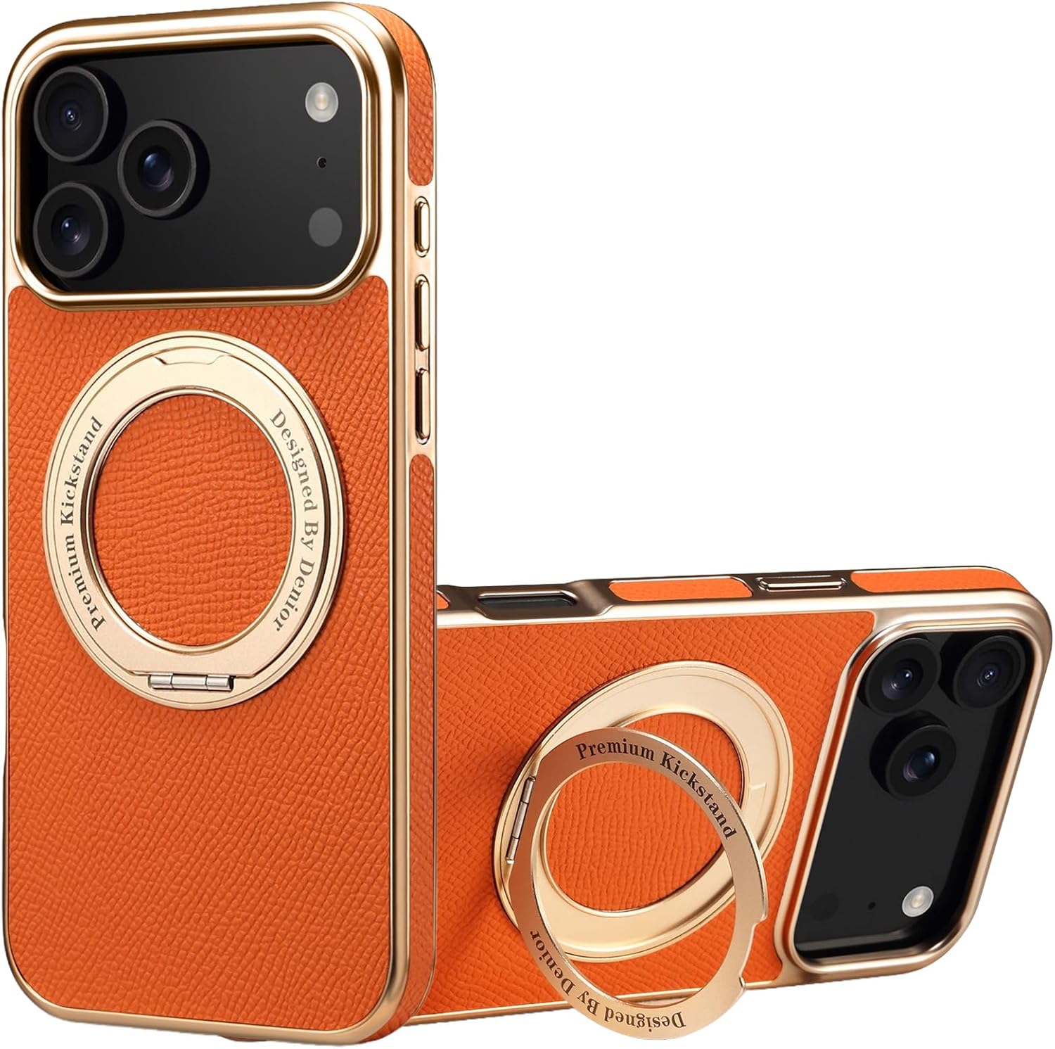 Case for iPhone 17 Series, with Stand Ring, Slim PU Leather Phone Case, Plating Edge Shockproof Cover, Magnetic Car Mount Compatible